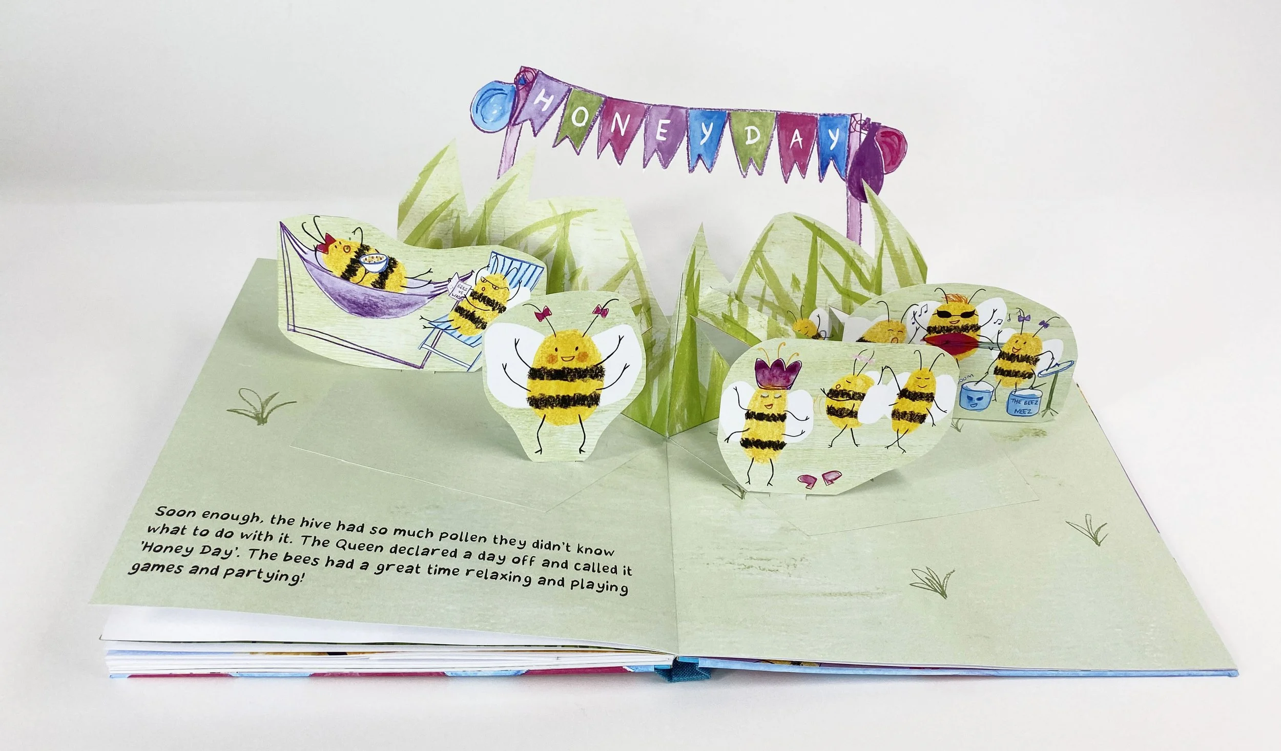 Honey is a bee who is allergic to flowers; she feels hopeless and without purpose until her hive rally round her to find her an alternate job to do and bring value to her community. A story of friendship and inclusivity and a reminder that it’s OK to be different.